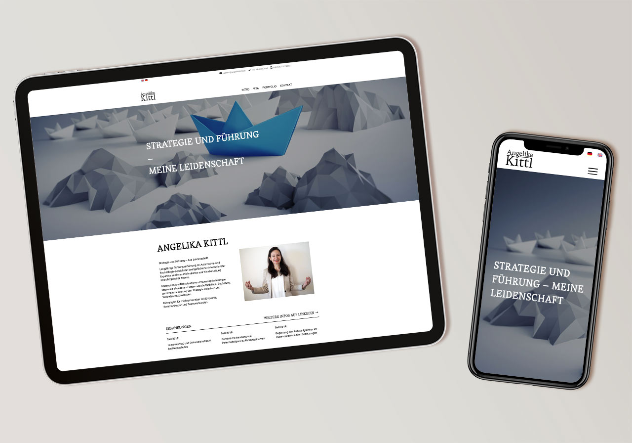 Für die Strategie- und Führungs-Expertin Angelika Kittl haben wir neben einem neuen Logo die Gestaltung und Entwicklung einer neuen One-Page WordPress Website übernommen. Im Fokus lag hierbei eine einfache und einleuchtende Struktur für einen schnellen Zugriff auf alle notwendigen Informationen.