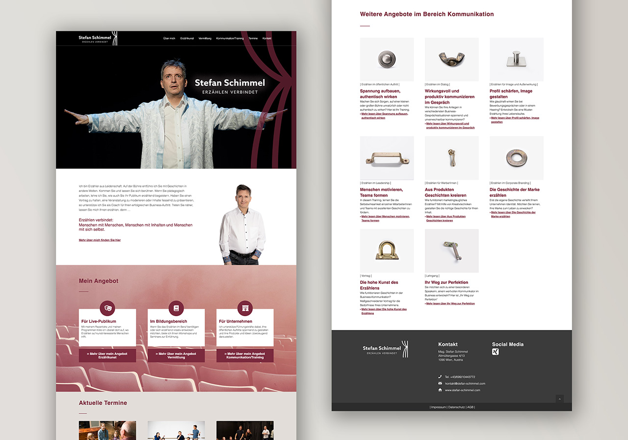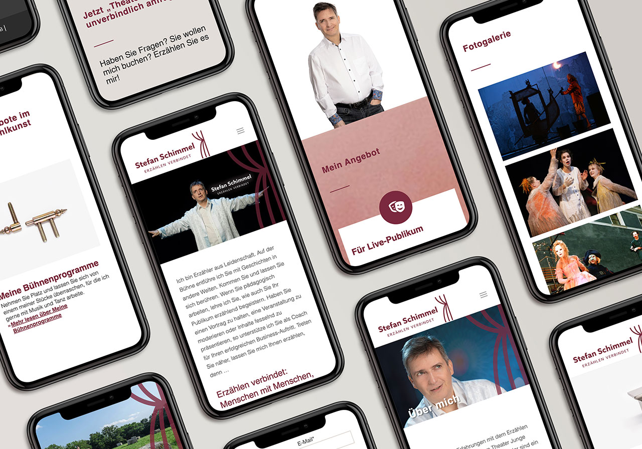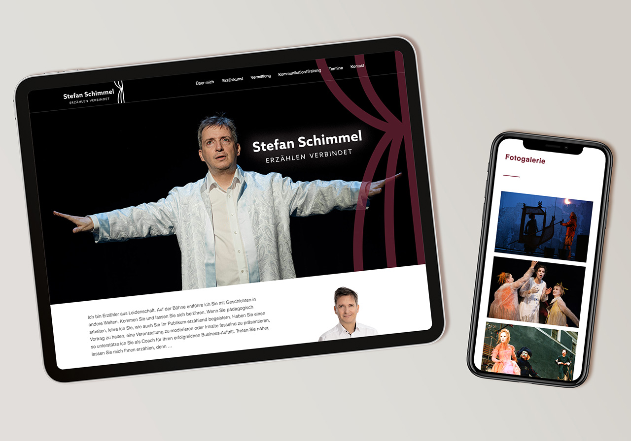 Für den Erzählkünstler Stefan Schimmel haben basierend auf dem Design der Grafikerin Johanna Kurz eine responsive WordPress Website entwickelt. Die Seite bietet einen gut strukturierten Einblick in alle Tätigkeitsbereiche des Erzählers und ermöglicht den Besuchern eine unkomplizierte Kontaktaufnahme. Darüberhinaus beinhaltet die Seite eine umfangreiche Fotogalerie zur visuellen Darstellung der einzelnen Inszenierungen.